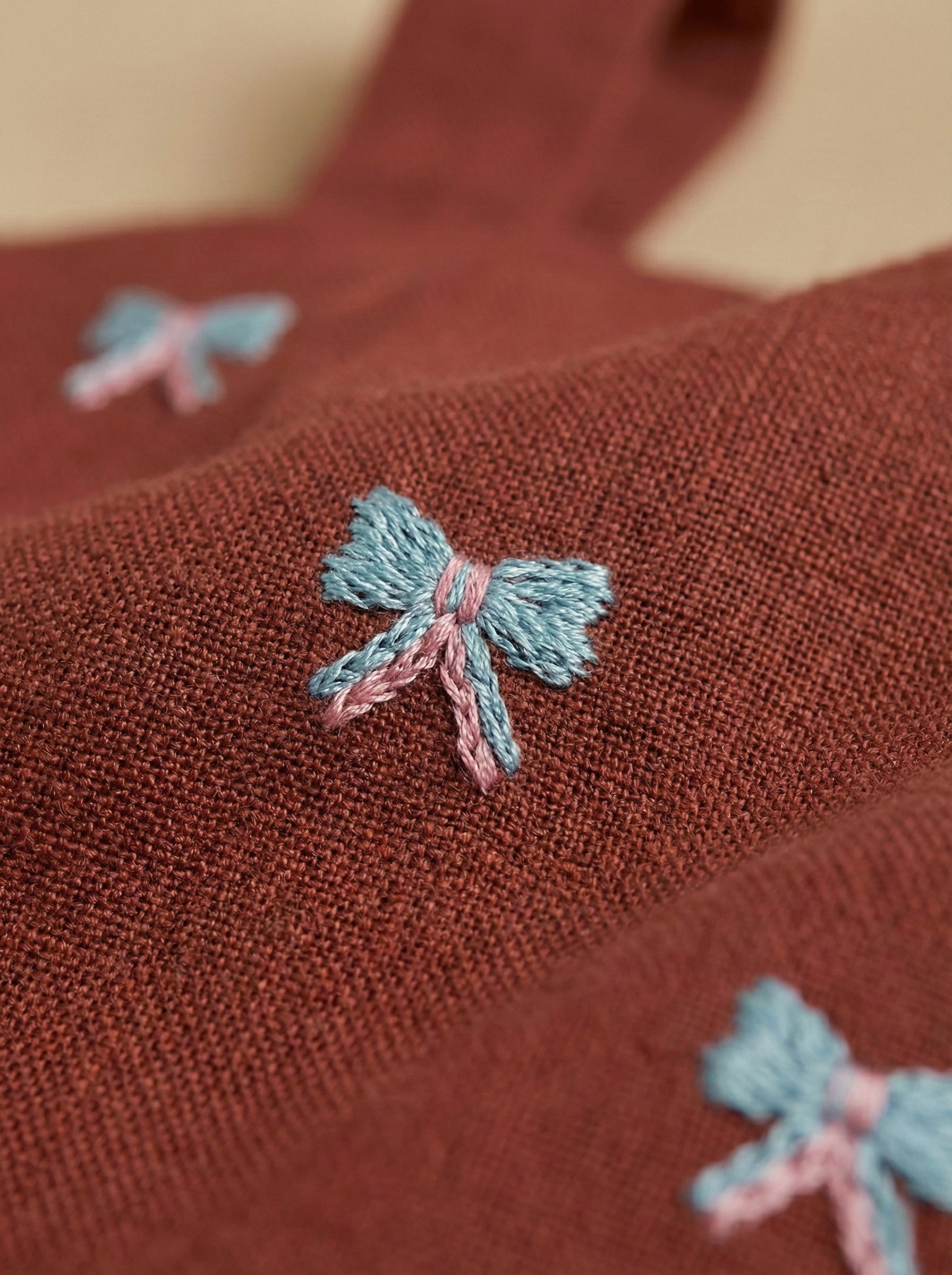 • Hand-embroidered bow motifs