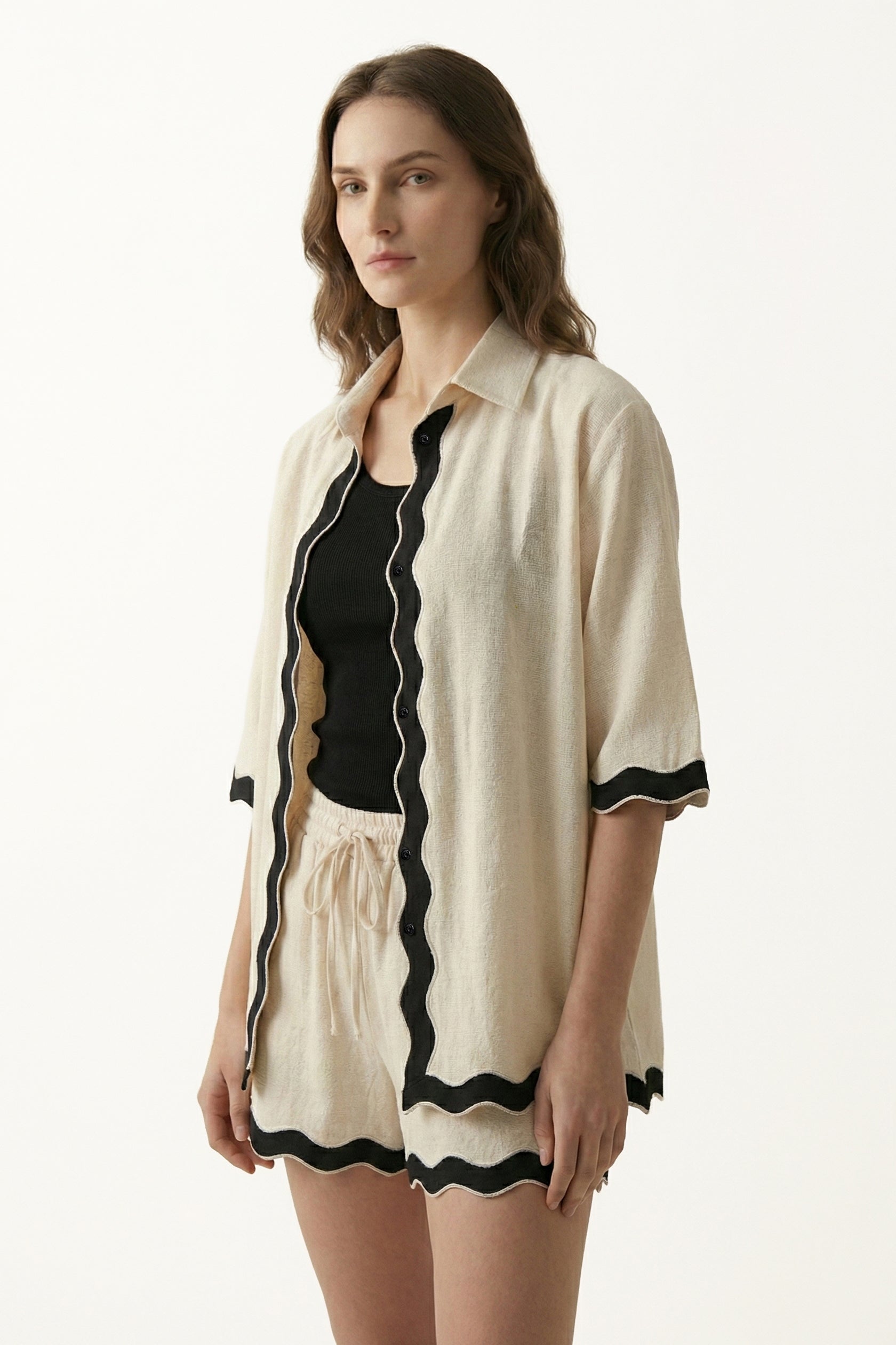 - Contrast scalloped detailing