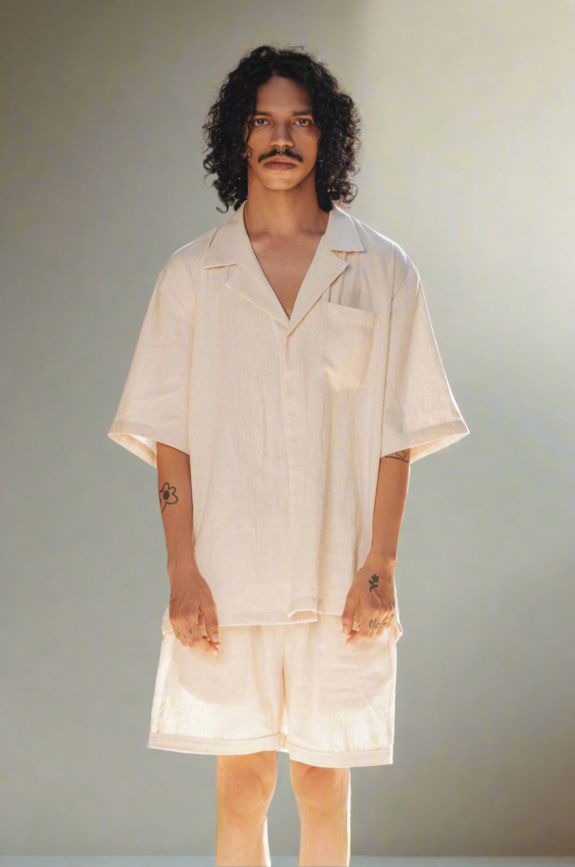 Stripped of excess, the Blizzard Cut Shorts let the fabric speak for itself. Made from undyed Kala cotton and entirely handwoven, these white shorts are airy, effortless, and naturally elegant. For days when less is truly more.