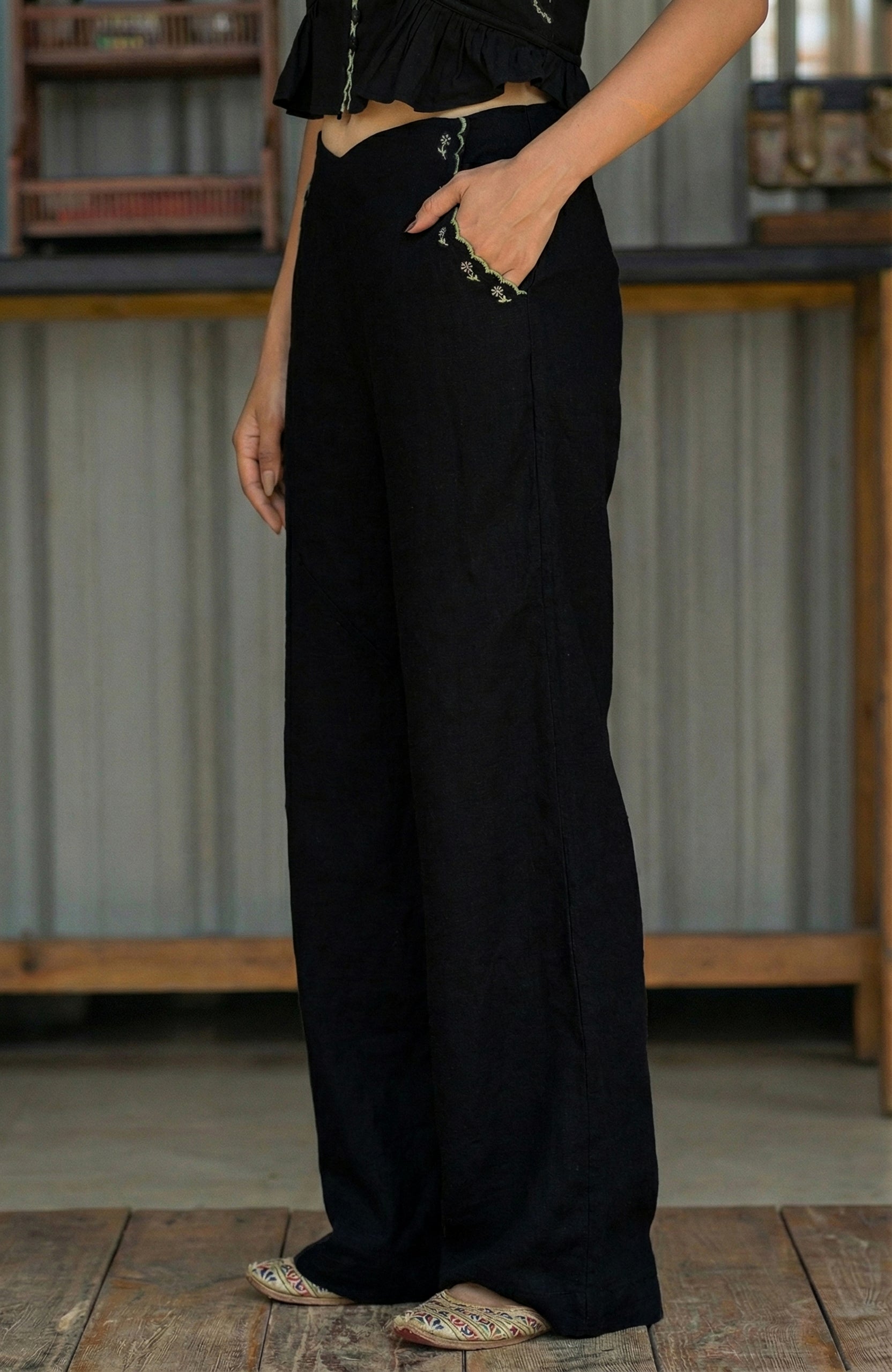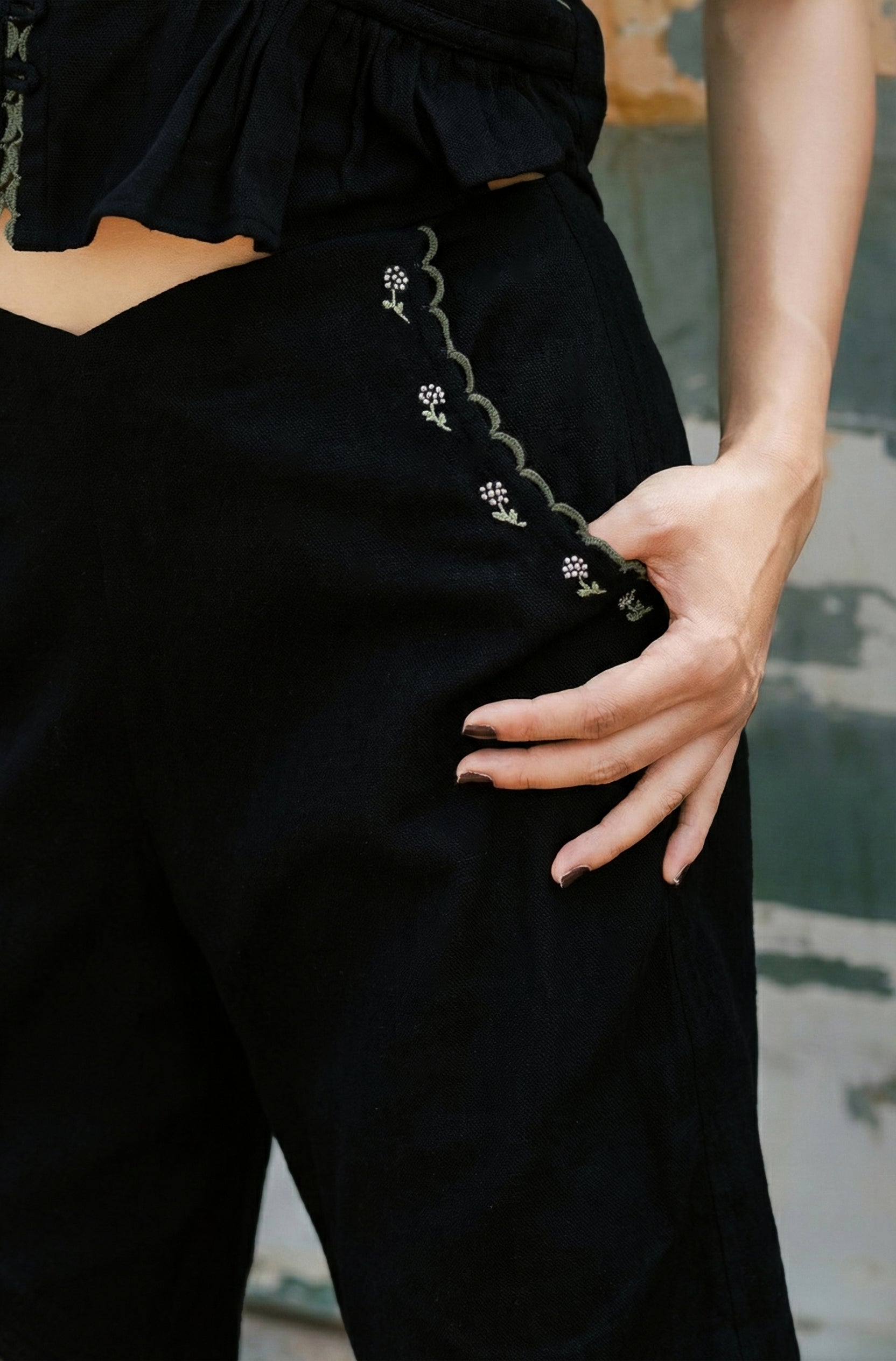 Step into effortless elegance with our Midnight Bloom Pants, crafted in soft, breathable handwoven Kala cotton. Inspired by moonlit gardens, this piece features delicate hand-embroidered floral motifs that bloom subtly along the pockets—an ode to artisanal charm in its purest form.