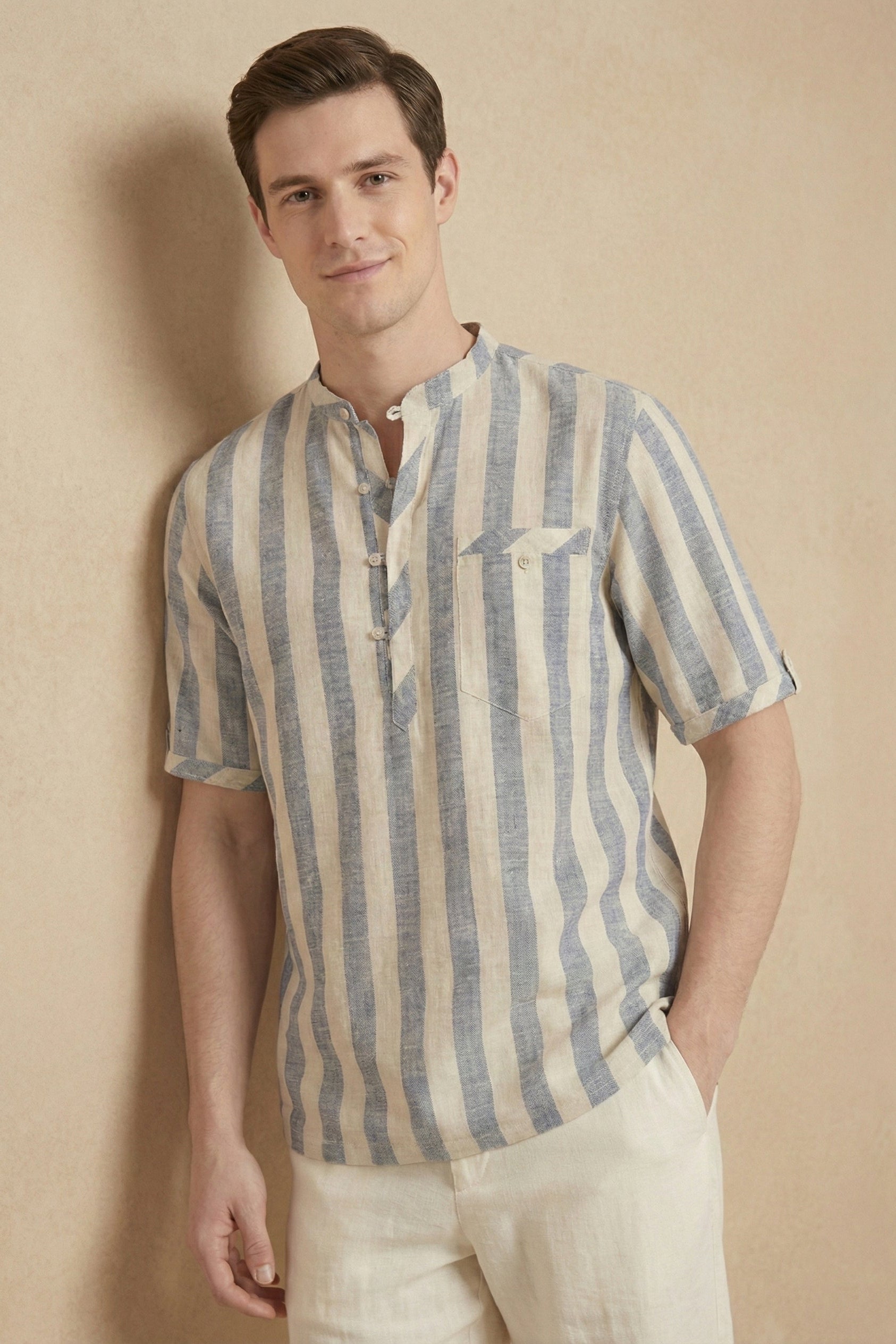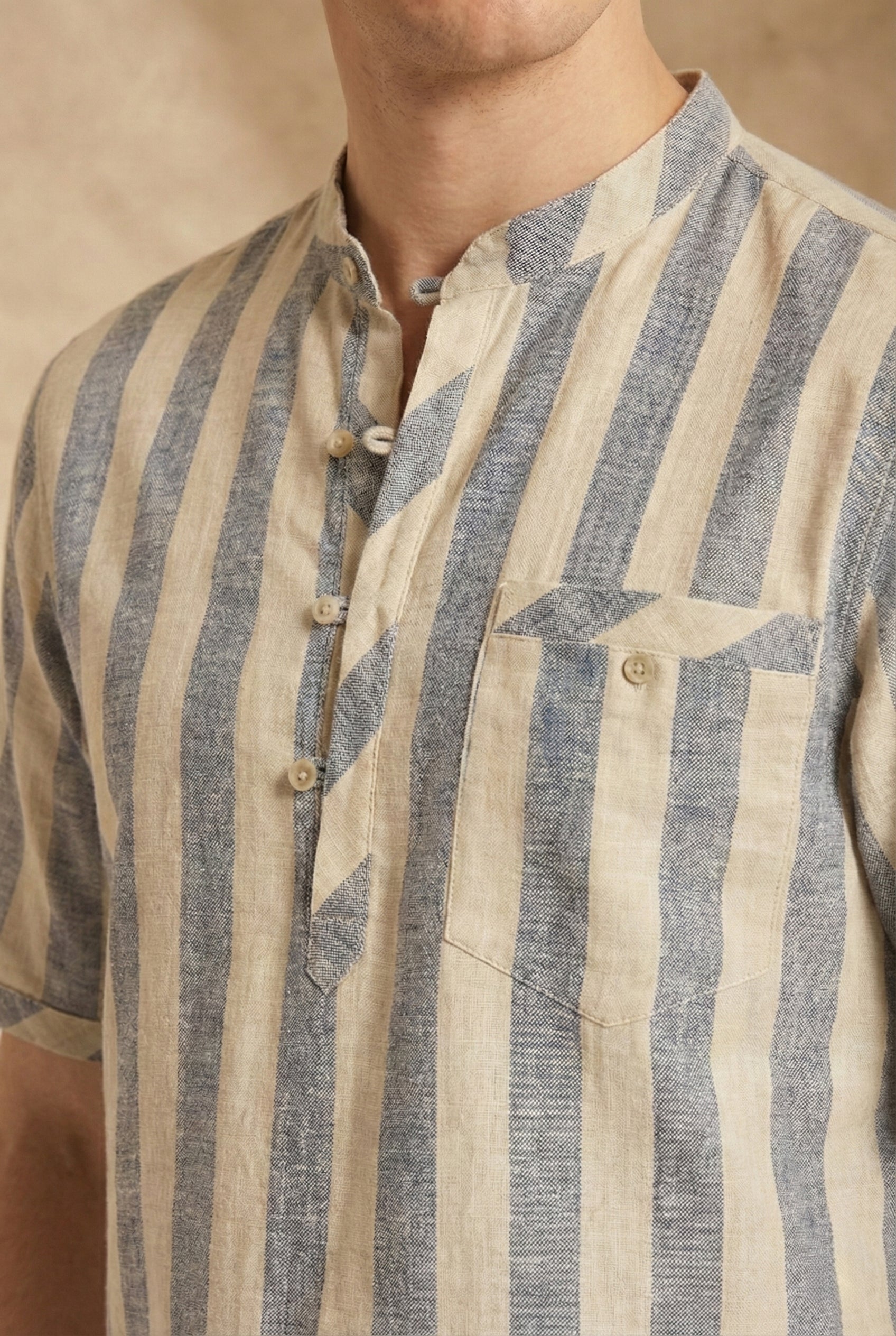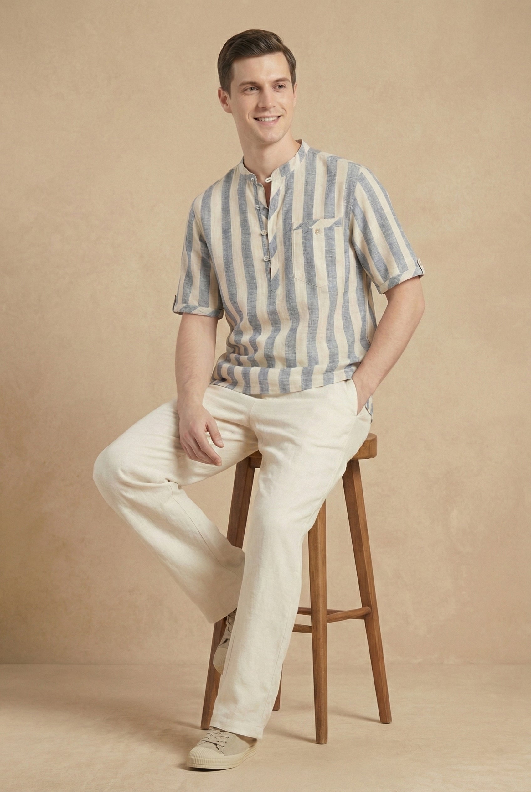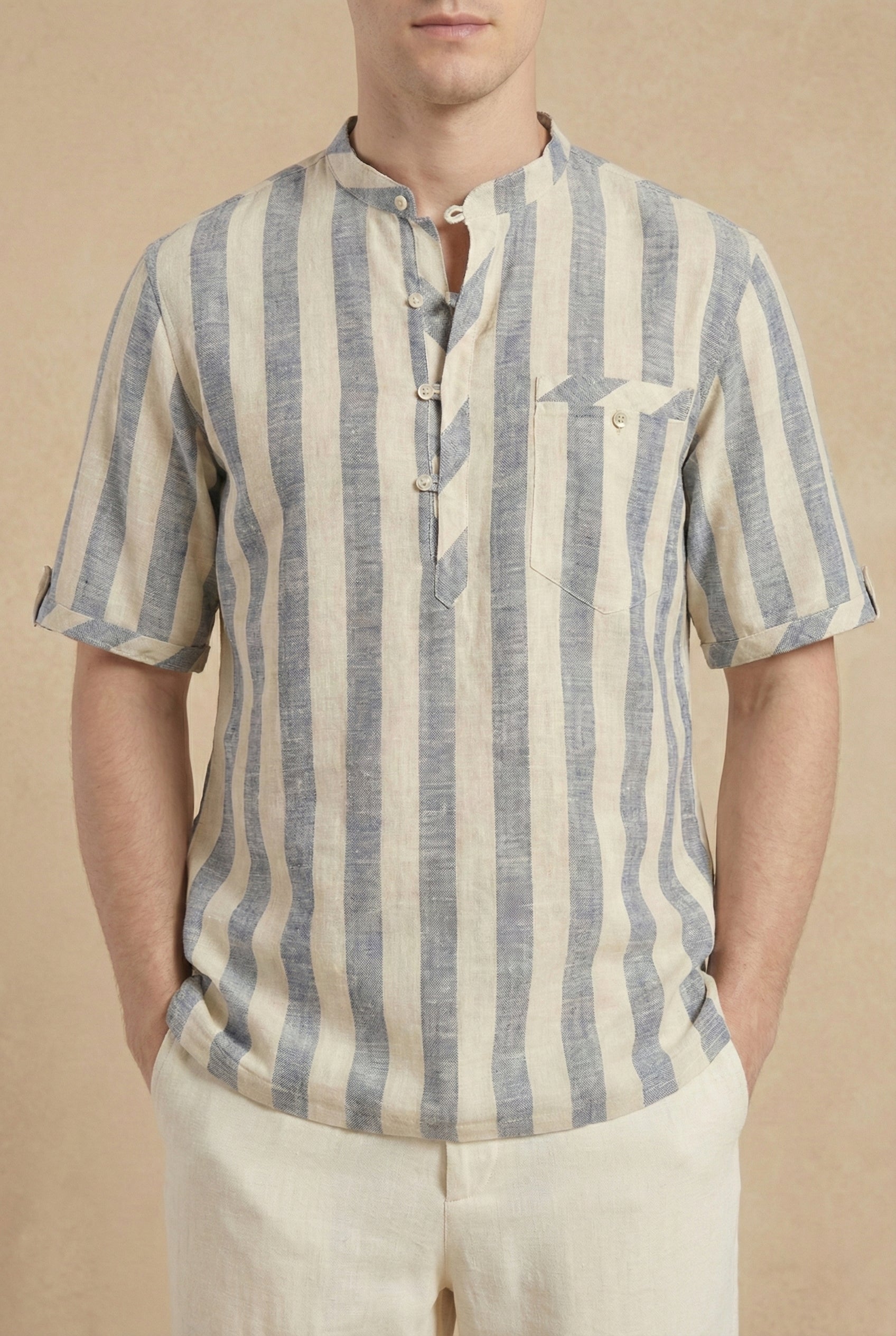 Inspired by easy seaside living, the Coastal Trails Shirt brings together relaxed craftsmanship and timeless stripes. Made from breathable, skin-friendly fabric, it features a half-placket design, soft vertical lines, and a comfortable silhouette that moves with you. Finished with subtle detailing and a refined pocket, this shirt is perfect for effortless everyday style — from weekend brunches to holiday escapes.
